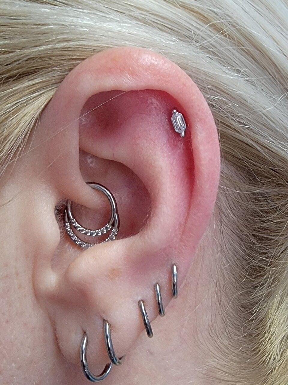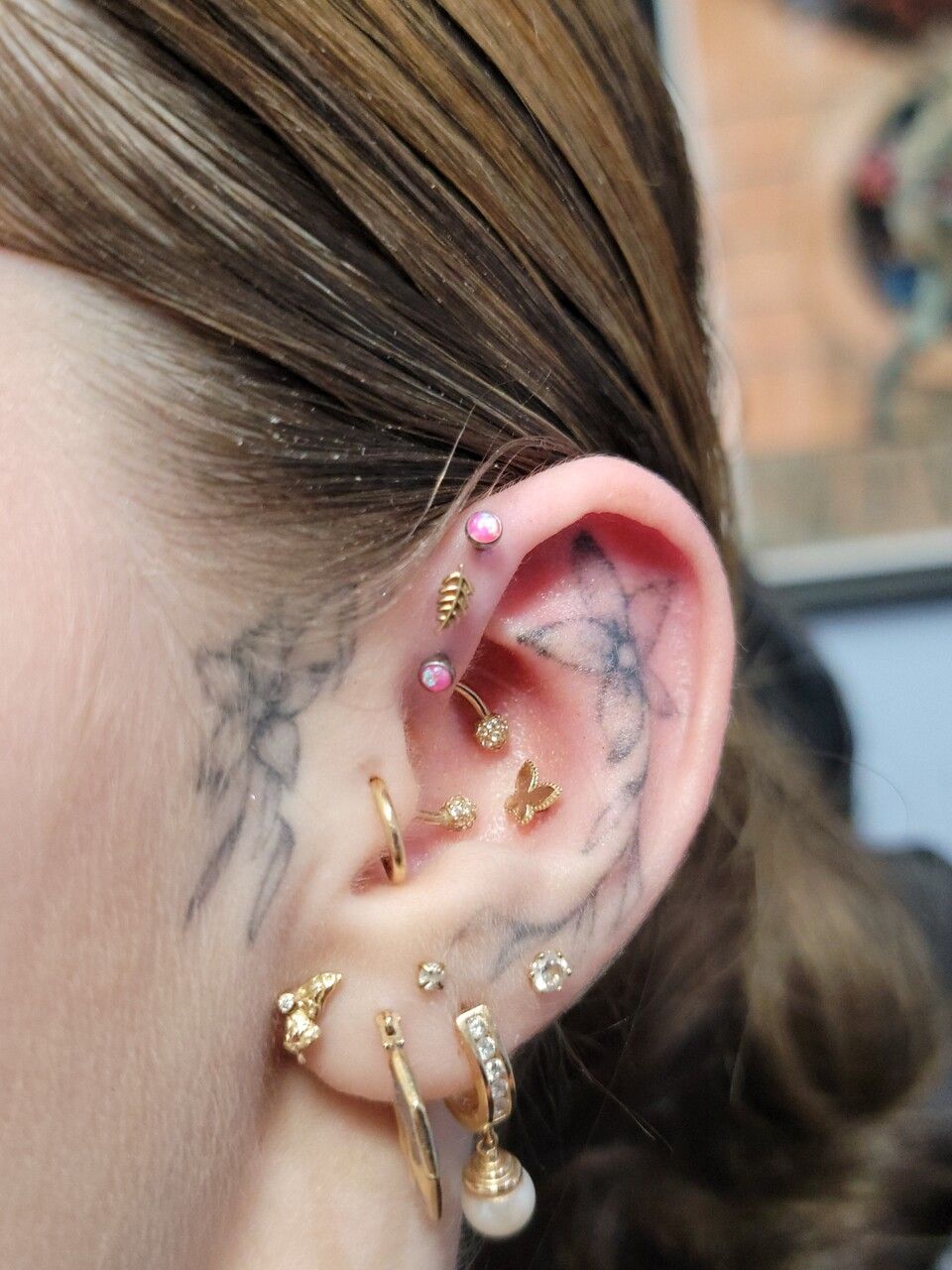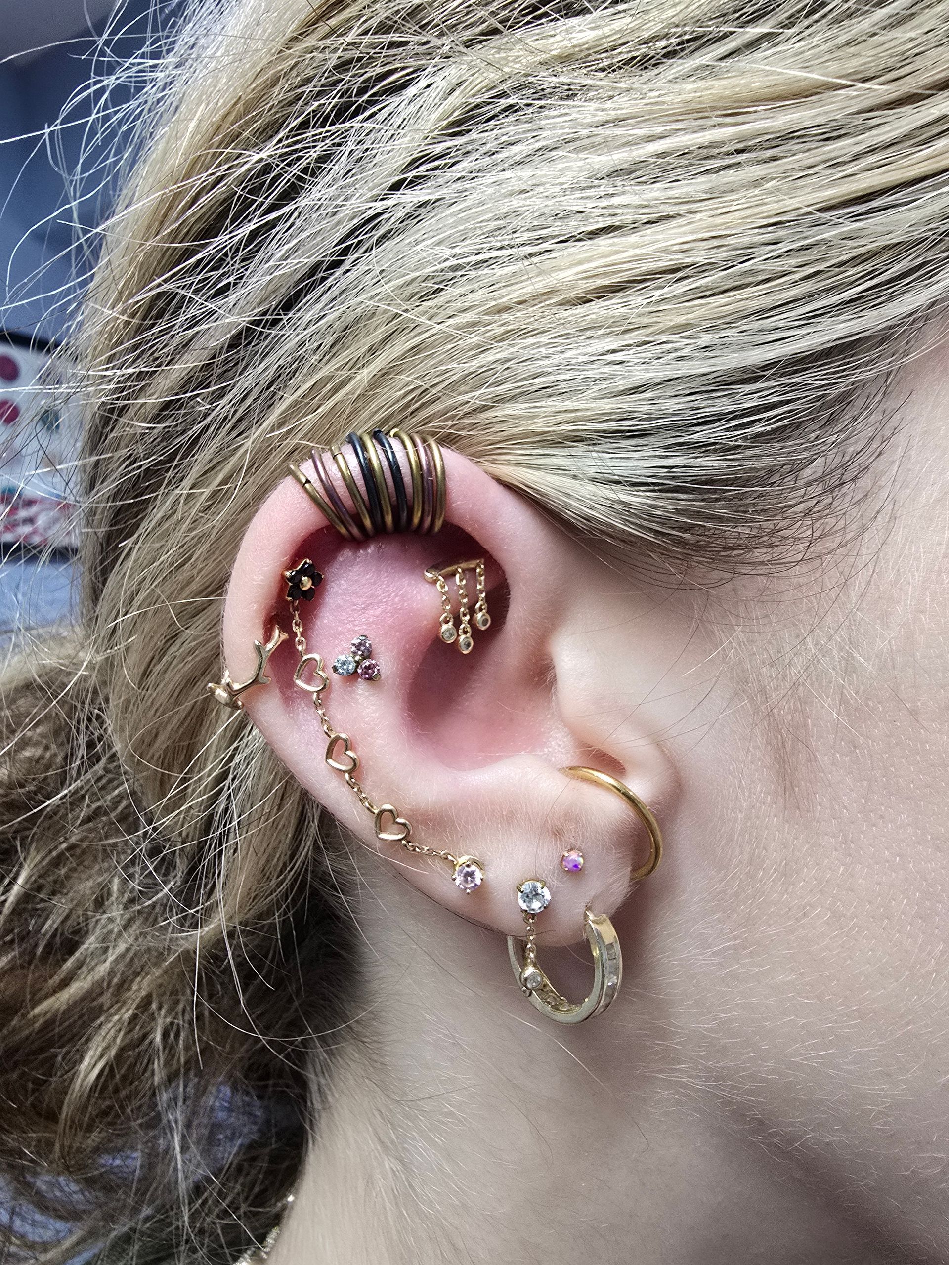 We prioritize safety, skill, and comfort in every piercing. Our studio uses only sterile tools and implant-grade or gold jewelry, all in a clean, welcoming space. Whether it’s your first piercing or part of a curated look, we’re here to guide you with care and expertise.